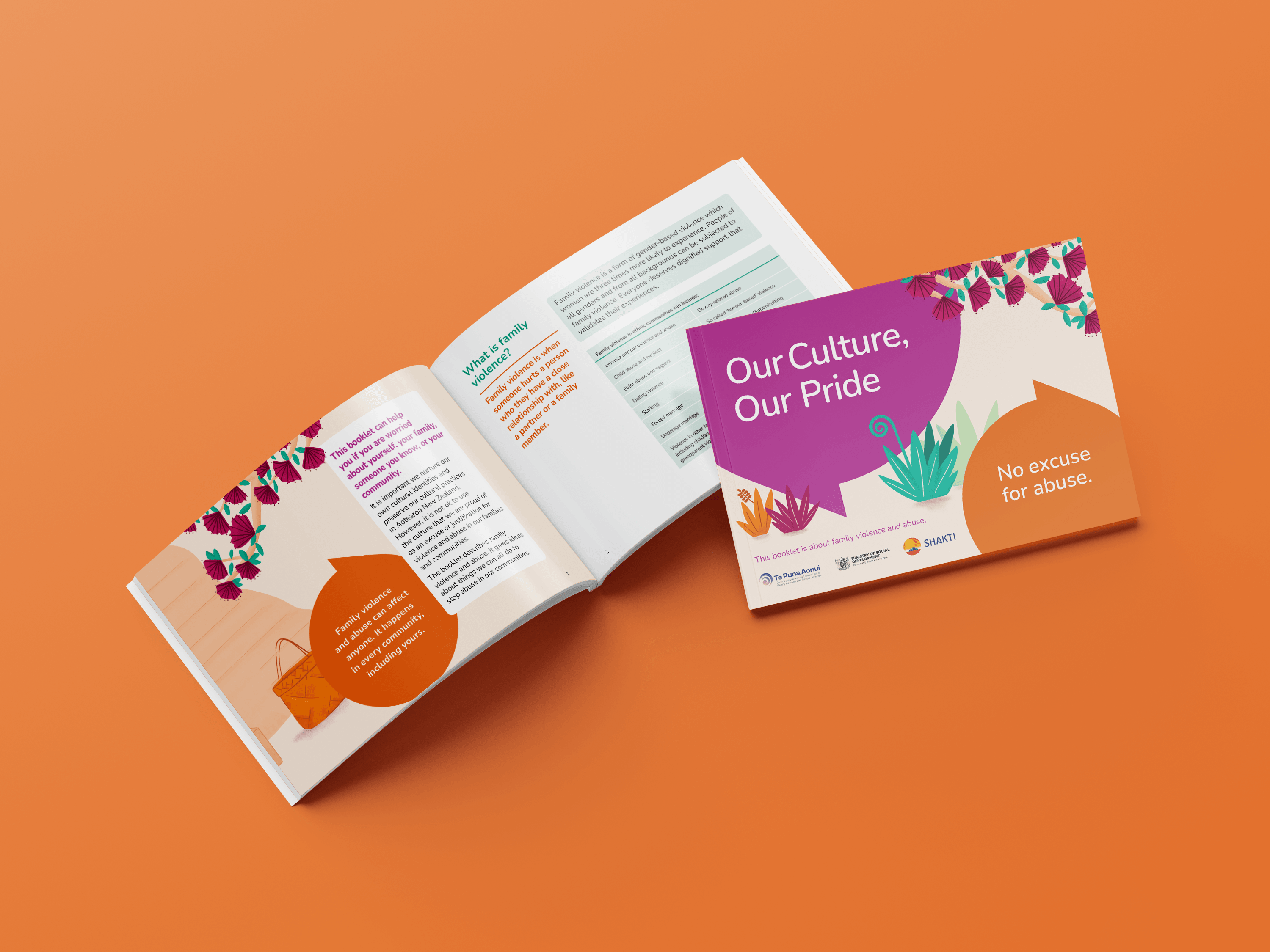 The ECVP team, in collaboration with the Ministry for Ethnic Communities, Shakti and Te Puna Aonui Ethnic Communities Network, has updated, redesigned, and translated the Our Culture, Our Pride: No Excuse for Abuse booklet into 13 languages: Arabic, Dari, Farsi, Hindi, Japanese, Korean, Pashto, Punjabi, Simplified Chinese, Spanish, Tagalog, Tamil and English. This resource raises awareness of different forms of FVSV that can affect ethnically diverse communities and provides information on prevention and accessing support.